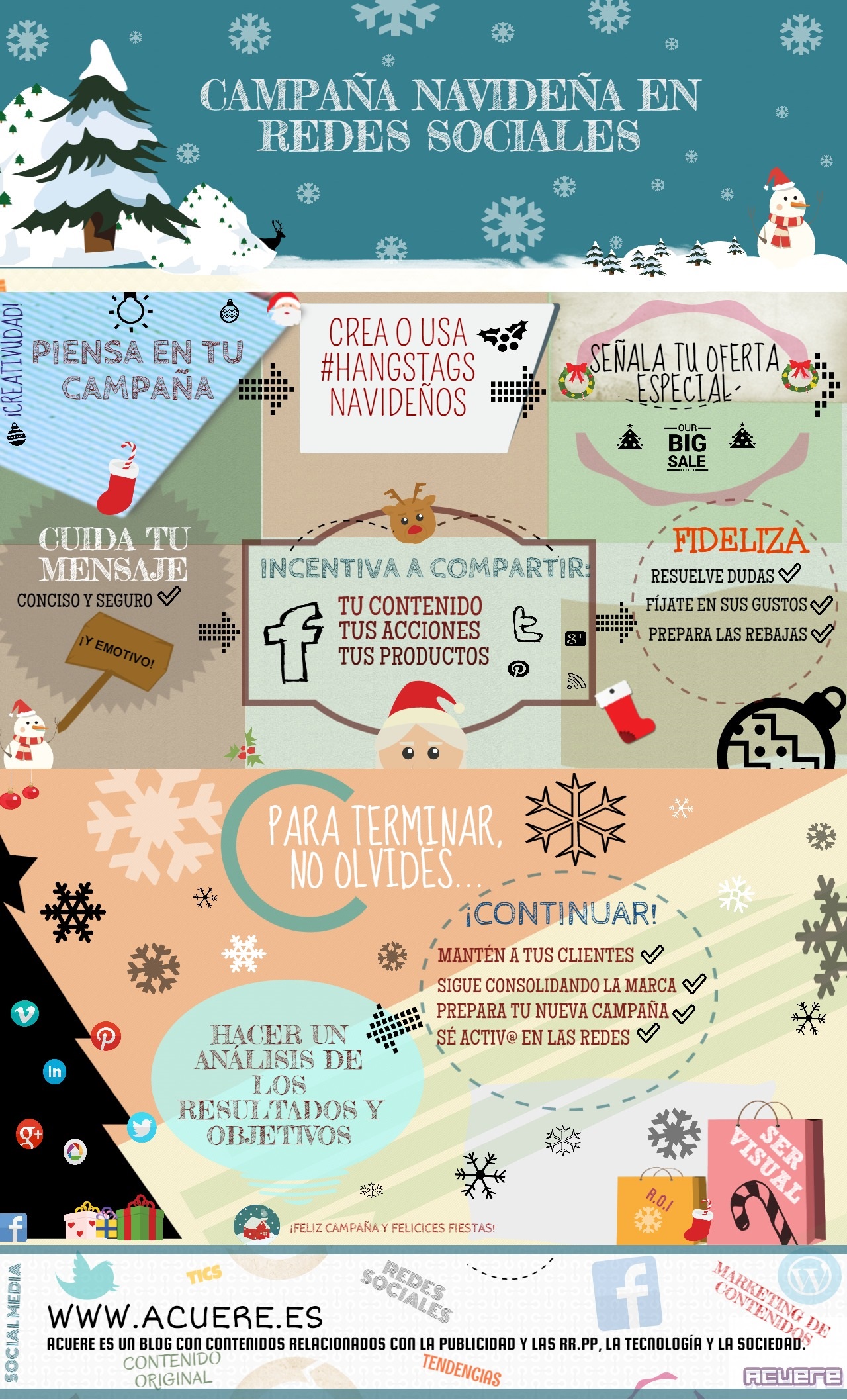 Para tener éxito estas navidades en las redes sociales, puedes servirte de esta infografía que resume brevemente los pasos a seguir para la construcción de una campaña navideña.