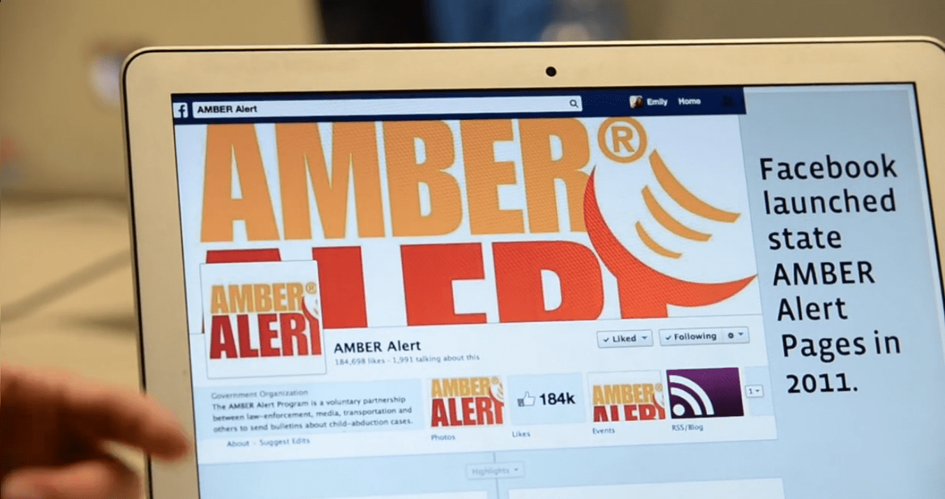 Facebook ayudará a encontrar y retornar niños desaparecidos a través de su nuevo servicio: Alerta Ámbar (Ambert Alert). Con esta nueva iniciativa, cuando el Centro Nacional para Niños Desaparecidos y Explotados de Estados Unidos emita una alerta Amber, Facebook mostrará la alerta en la página de Inicio de los usuarios que estén dentro de la zona geográfica de búsqueda.