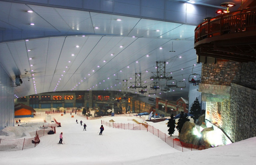 ¿Siempre has soñado con una pista de esquí de tipo negro (nivel alto) en un centro comercial? Éste es tu lugar. El complejo tiene más de 700 tiendas, un teatro y un «Centro de las Artes de la Comunidad». Es decir, puedes asistir a un espectáculo en el teatro de 543 asientos o a una exposición en uno de sus 18 estudios de arte. ¡Una pasada! Incluso puedes poner a prueba tus habilidades en el simulador de carreras en Magic Planet; el mayor centro de entretenimiento gamer en Dubai.