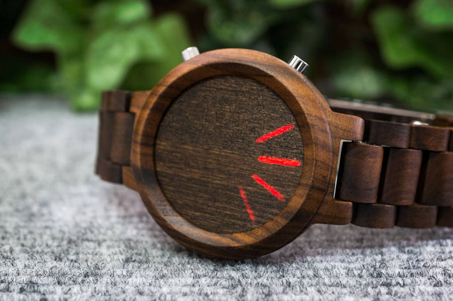 Tokyoflash es una empresa japonesa especializada en la fabricación de relojes de alta tecnología. Estos relojes inteligentes están equipados con tubos de LED que proyectan la rotación y la luz que marcan la hora sobre la madera.